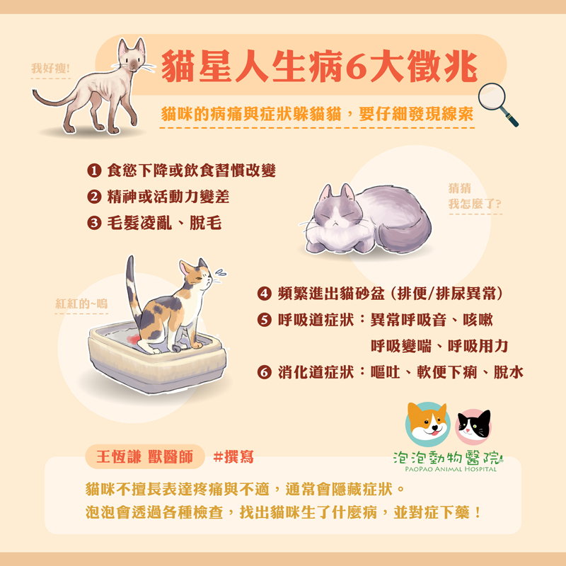 王恆謙獸醫師分享,貓咪通常把病痛藏得很好,需要飼主觀察細微,才能及早發現,早點給貓咪安排合適的治療與照護。
